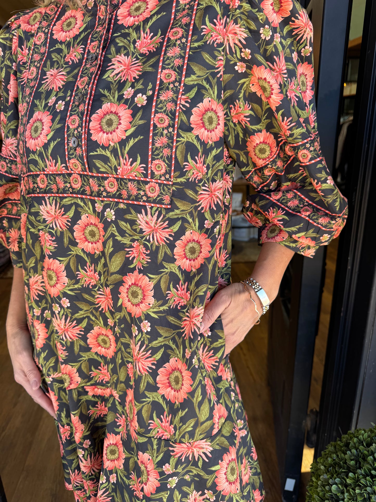 Introducing the Ellis Dress in elegant black. This dress features a beautiful floral print, adding a touch of femininity to your wardrobe. With its timeless design and high-quality material, this dress is perfect for any occasion. Elevate your style with this must-have piece.