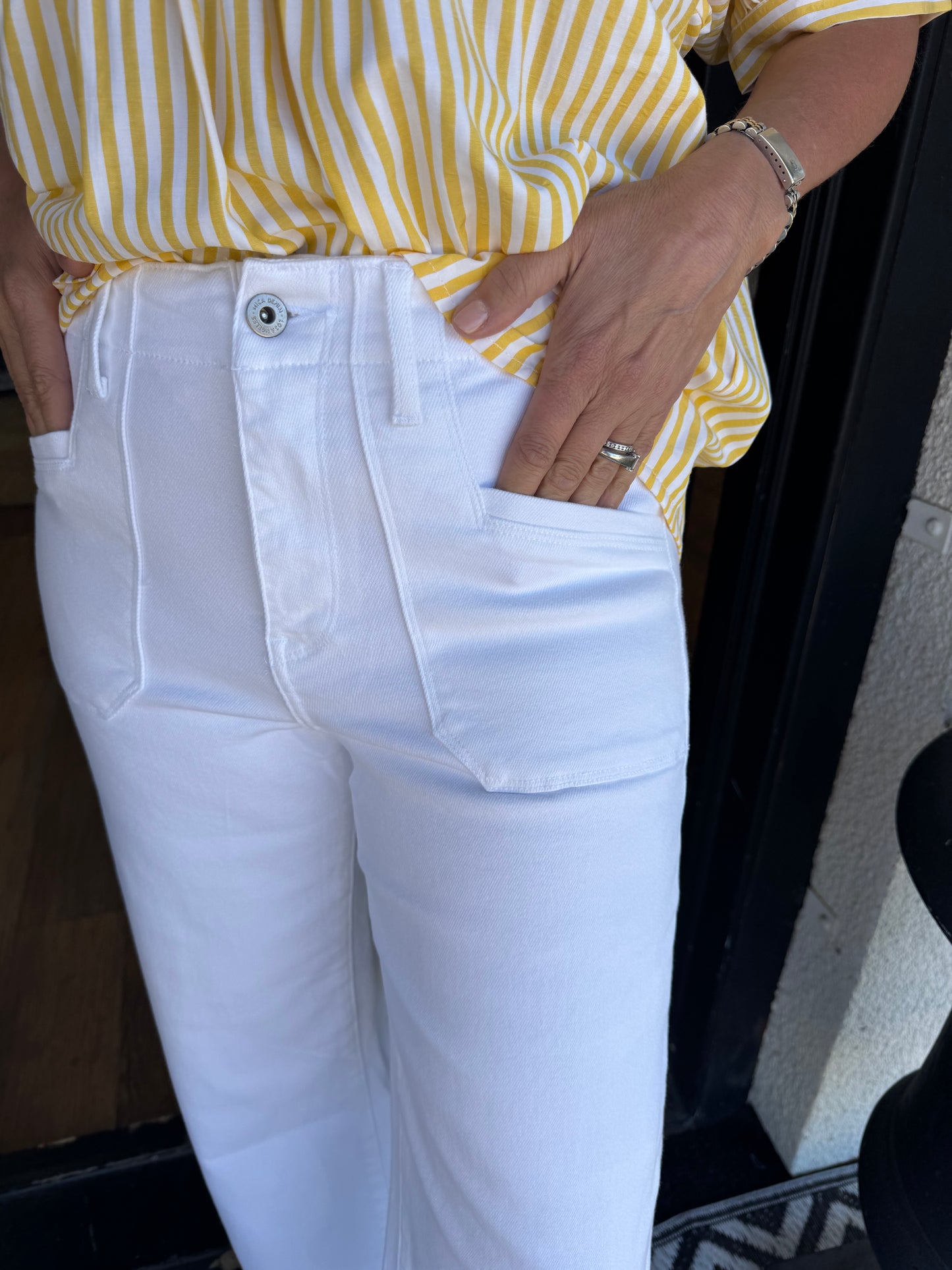 Elevate your wardrobe with the Super High Rise Wide Pant in Snow Milk. These stylish white pants offer a flattering fit and versatile style, perfect for dressing up or down. Enjoy comfort and confidence in every step while adding a fresh touch to your outfits.