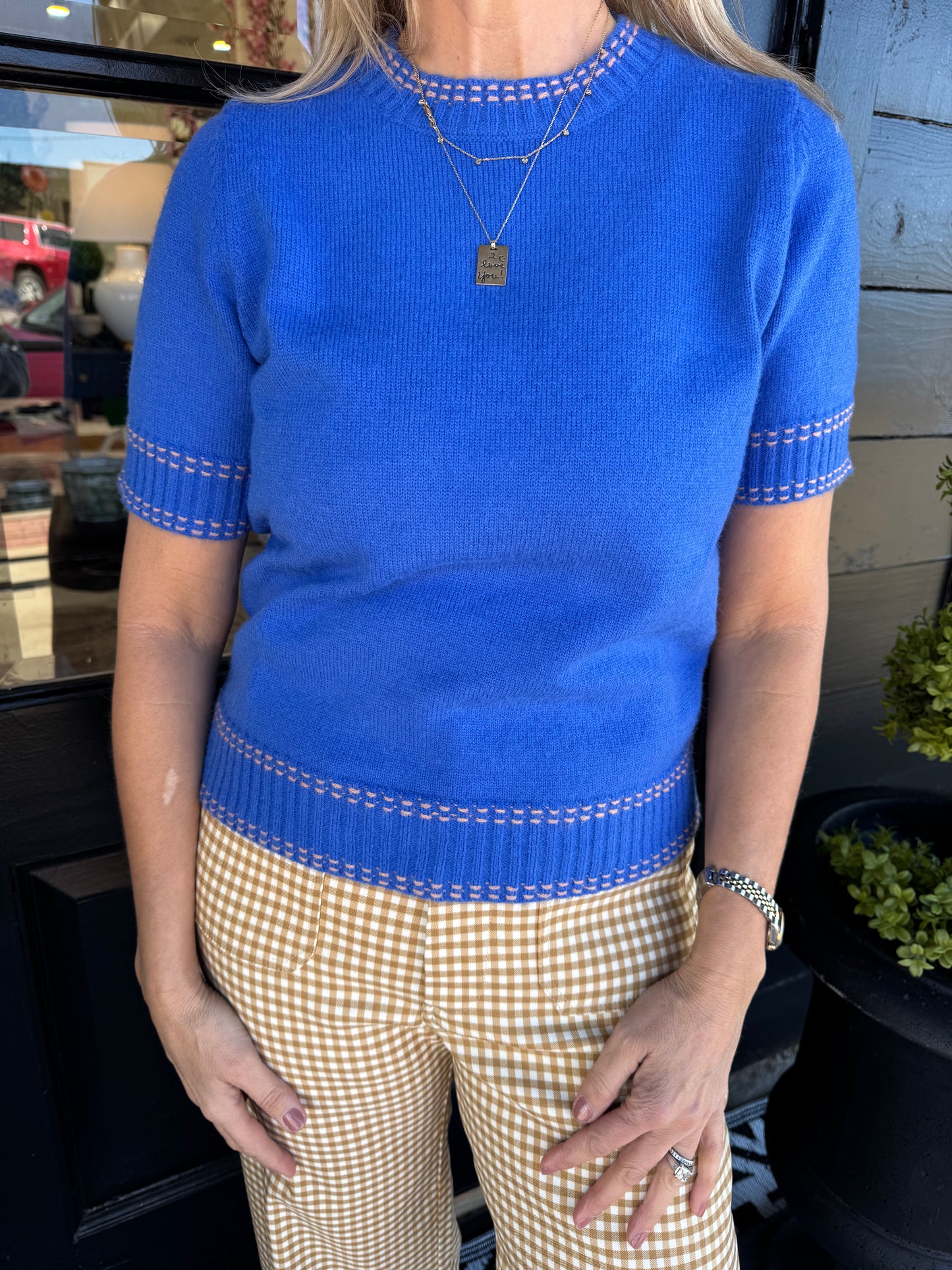 Introducing the Joplin Top in a striking cobalt blue! This short sleeve sweater top is like a hug for your torso, keeping you cozy while looking fabulously chic. Throw it on and get ready to conquer the day—just don’t forget your sunglasses!