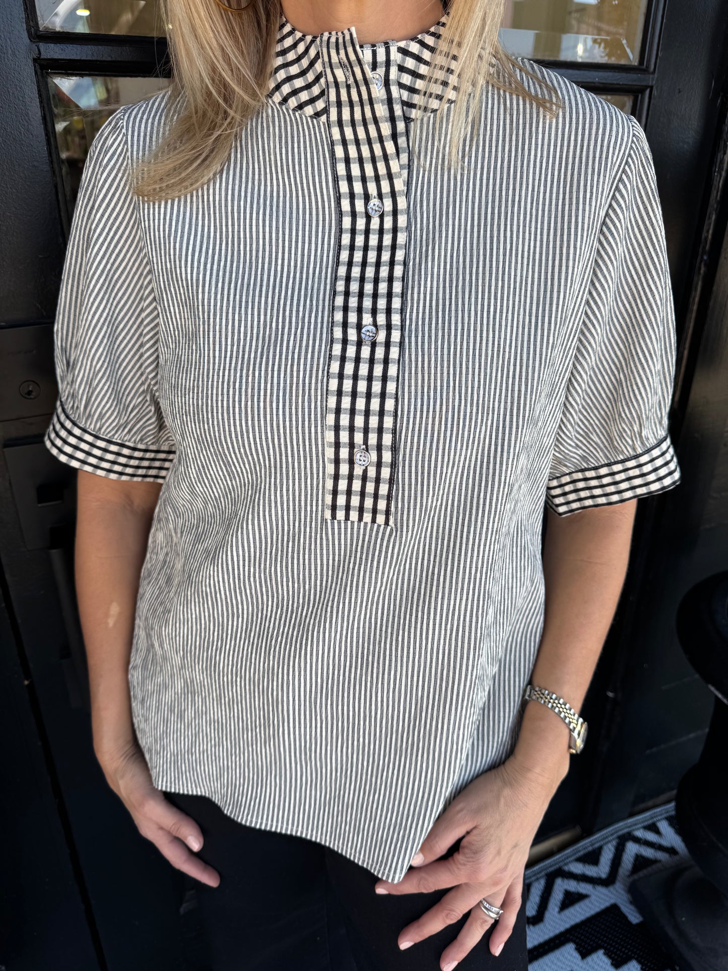 The Ainsley Top in Black features a stylish black and white pattern that effortlessly elevates your wardrobe. Its versatile design allows you to dress it up or down, making it a perfect choice for any occasion. You'll feel confident and chic while enjoying all-day comfort.