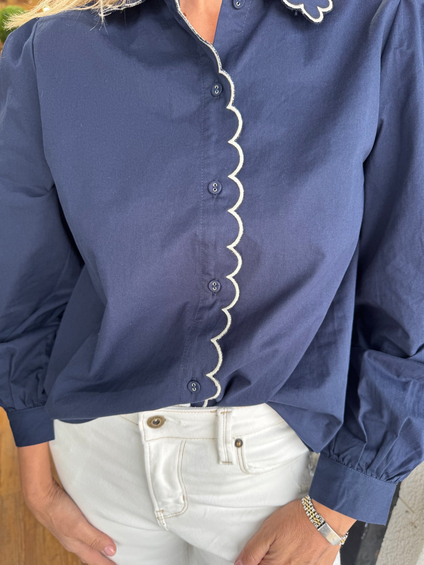 The Brielle Top in Navy is a versatile addition to any wardrobe. This sophisticated navy blouse is perfect for adding a touch of elegance to any outfit. Made from high-quality materials, it offers both comfort and style.