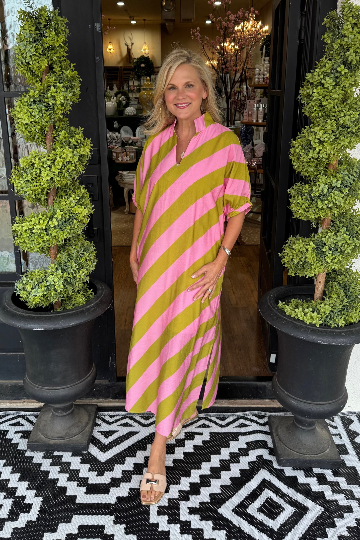Effortless charm meets playful style with the Camila Dress in Kiwi Pink. Vibrant pink and green stripes create a fresh, eye-catching look perfect for spring and summer occasions. The relaxed fit offers all-day comfort, while the classic striped pattern works for casual outings, weekend brunches, or dressed-up gatherings. A versatile wardrobe essential that brings color and personality to any season.