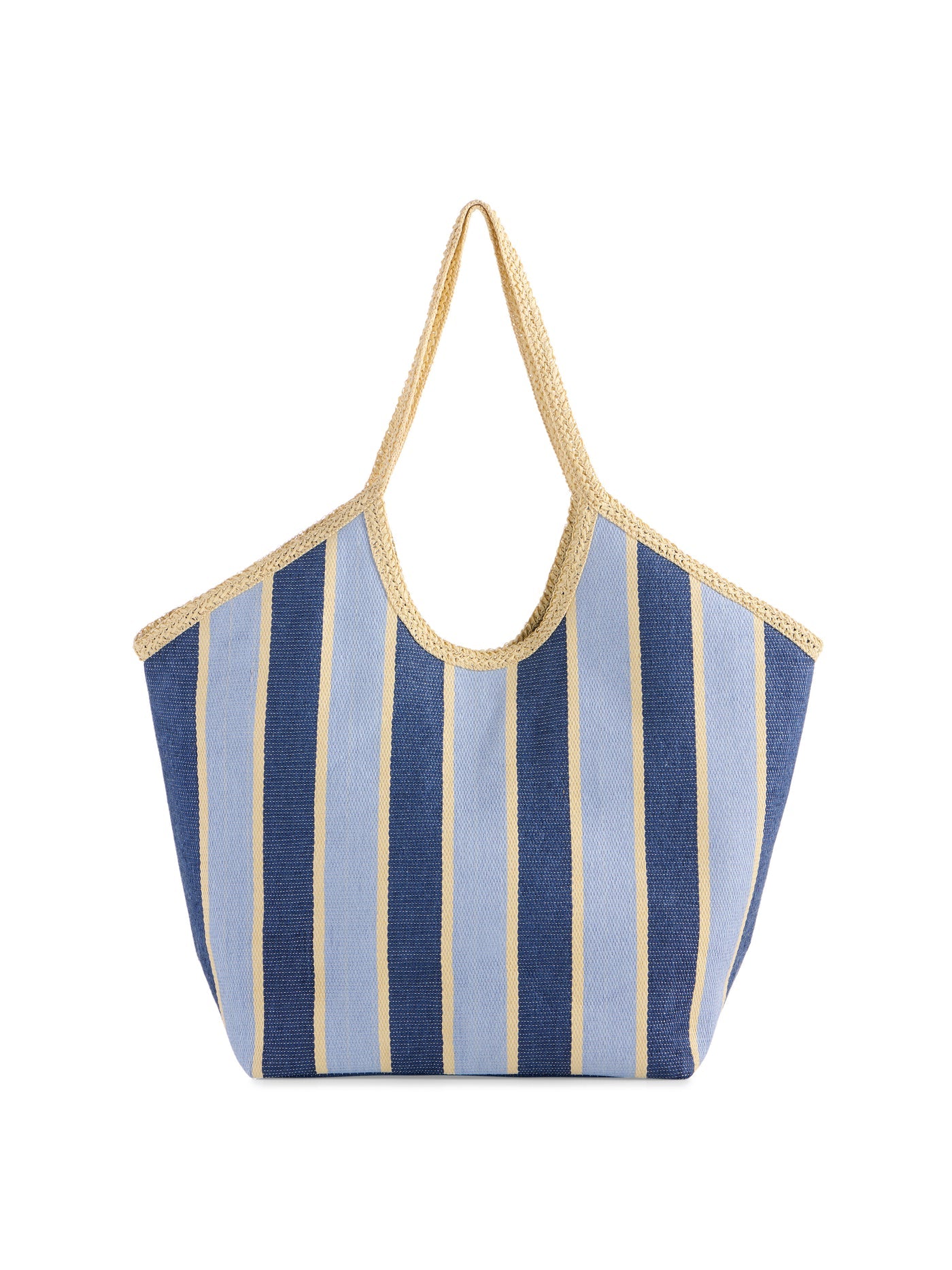 The Capri Tote brings sunshine wherever it goes with its vibrant stripes and roomy silhouette, perfect for beach days or market strolls. Crafted from woven paper straw, it features double shoulder straps, a magnetic snap closure, and an interior slip pocket to keep your essentials secure and accessible.