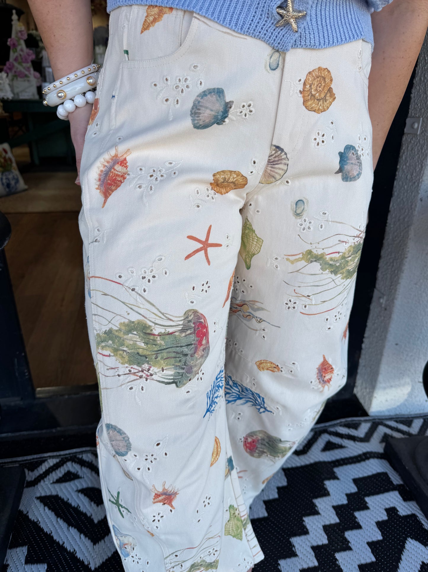 Embrace your beach days with the Cora Pant - Multi. Featuring a playful seashell pattern, these pants are perfect for seaside adventures, providing comfort and style while you relax under the sun. Slip them on for effortless beach vibes and let your carefree spirit shine.