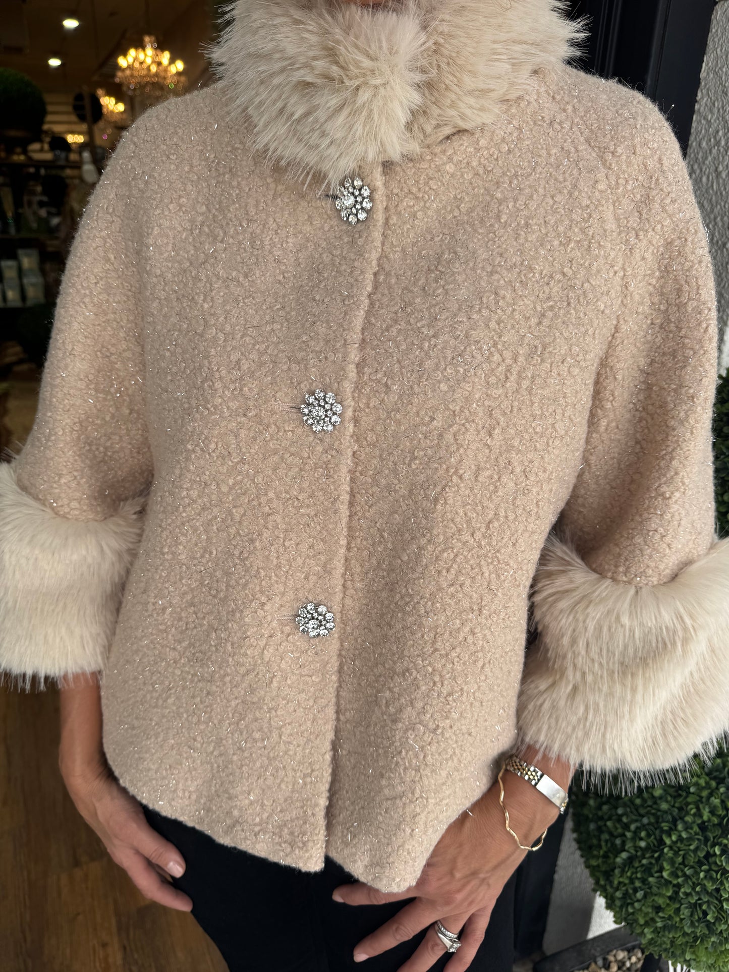 Ivy Jane Boucle Fur Trim Jacket