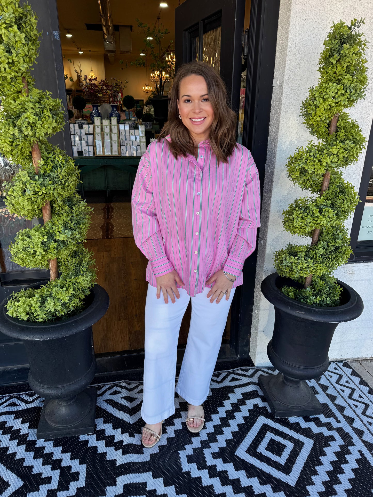 The Mavis Top in pink is perfect for spring! Its button-up design adds a fresh, stylish touch to your wardrobe, making it easy to dress up or down. Enjoy the comfort and versatility this top offers, ensuring you feel confident no matter the occasion.